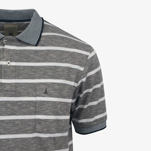 Camiseta polo manga corta diseño rayas, silueta regular, composicion 65%poliester-31%algodon-4%spandex, una prenda perfecta para sentirte comodo y fresco sin perder el estilo.