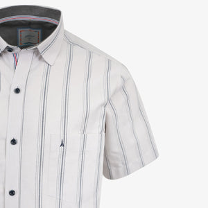 Camisa manga corta sport diseño rayas, silueta regular, composicion 100% algodón, esta camisa es comoda y versatil combinala con driles para un outfit sport o con bermuda para los dias de verano.