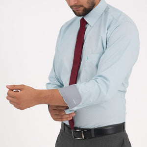 Camisa manga larga clásica diseño mil rayas, silueta regular, composicion 50% poliéster - 50% algodón, esta camisa es el complemento perfecto para tus trajes y pantalones; combinalo con una corbata o pajarita.
