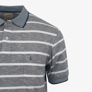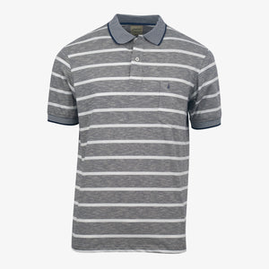 Camiseta polo manga corta diseño rayas, silueta regular, composicion 65%poliester-31%algodon-4%spandex, una prenda perfecta para sentirte comodo y fresco sin perder el estilo.