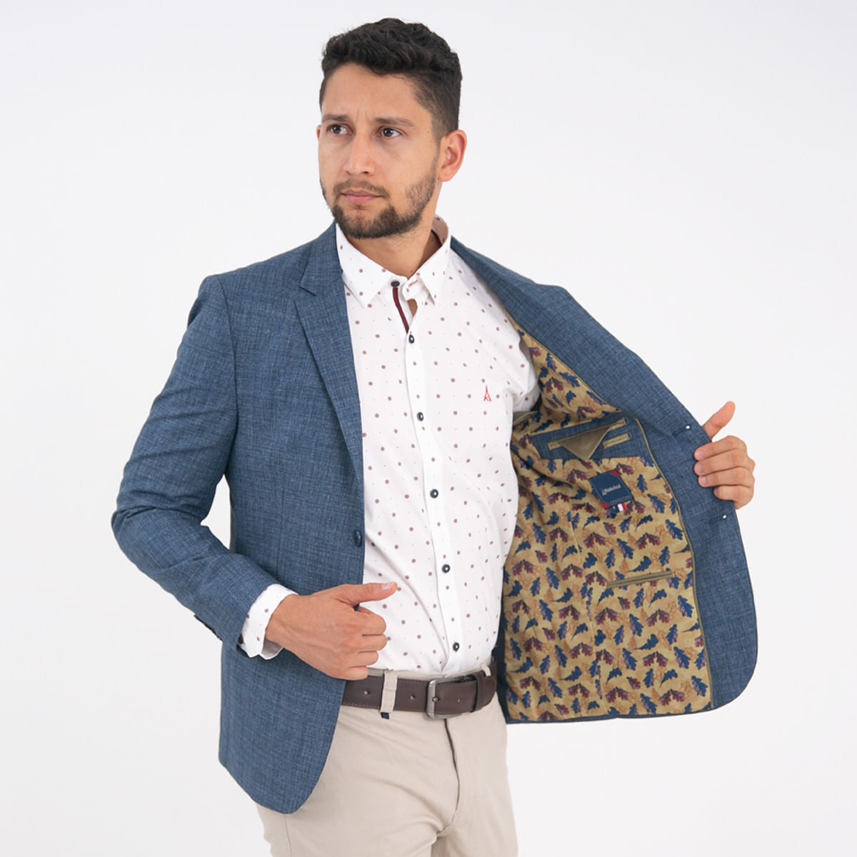 Chaqueta semidesestructurada forro completo diseño fondo entero, silueta regular, composicion 80% poliéster - 20% viscosa, el complemento perfecto para lucir elegante y a la moda